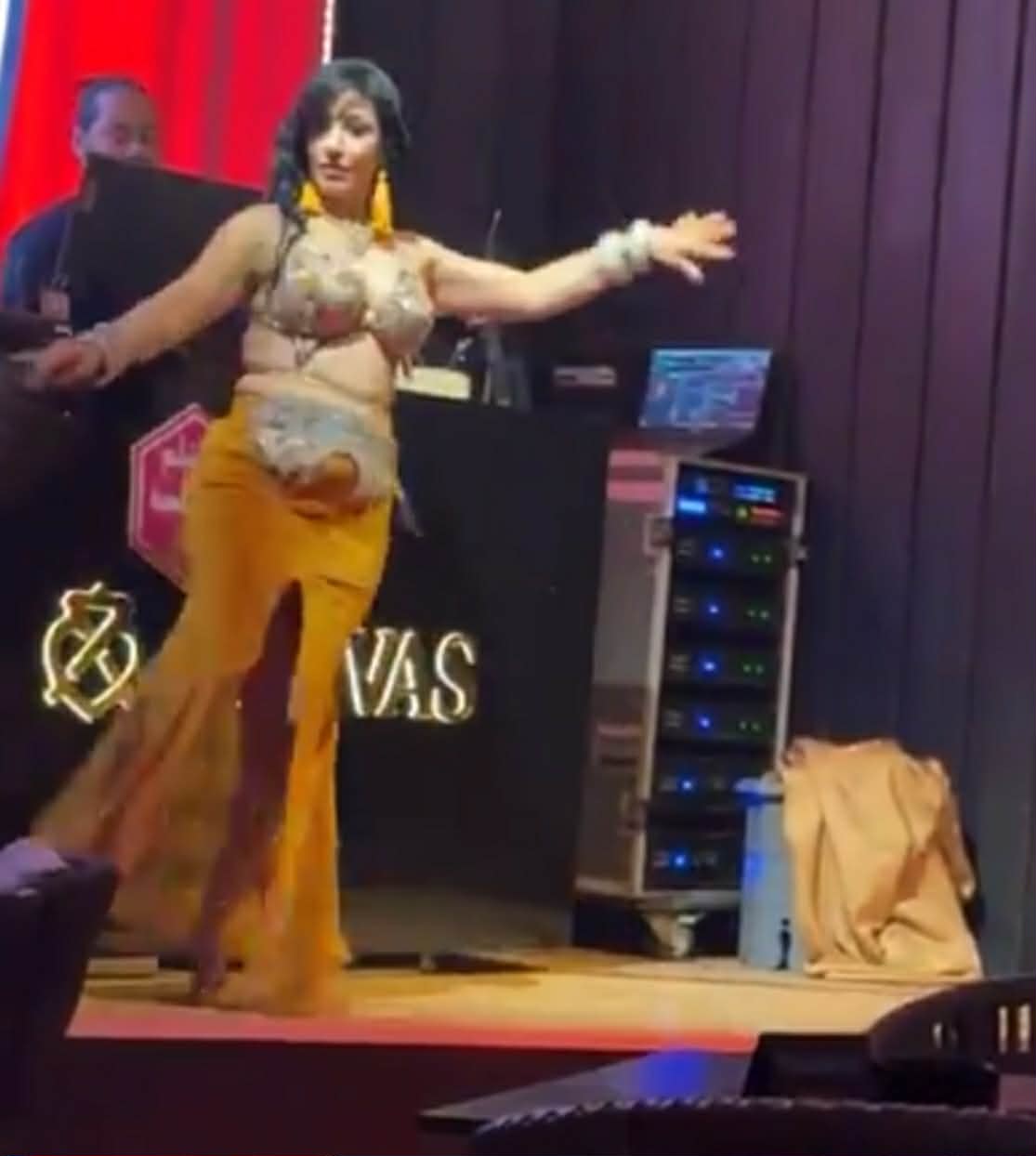 البدلة الذهبية جاءت بتصميم أنيق يبرز رشاقة قوامها وتفاصيل حركاتها، مع تطريزات لامعة زادت من وهج الإطلالة ومنحتها طابعًا ملكيًا. اللون الذهبي لم يكن مجرد اختيار جمالي، بل حمل دلالة واضحة على الثقة، التألق، وحضورها القوي على الساحة الاستعراضية.