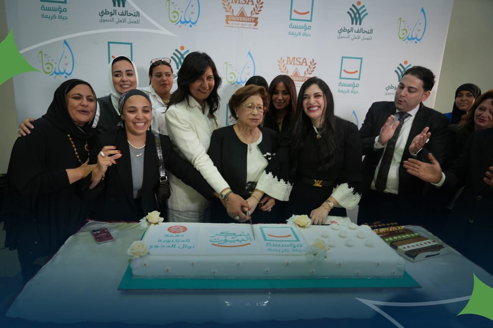 شهد الحفل حضور نخبة من الشخصيات البارزة، من بينهم السفيرة نبيلة مكرم، رئيسة الأمانة الفنية للتحالف الوطني للعمل الأهلي التنموي، والدكتورة نوال الدجوي، رئيسة مجلس أمناء جامعة أكتوبر للعلوم الحديثة والآداب (MSA)، والدكتورة عهود وافي، رئيسة مجلس أمناء مؤسسة حياة كريمة، والمهندسة إنجي منصور، رئيسة مجلس إدارة مؤسسة “لبلدنا” للتنمية، والدكتورة بثينة مصطفى، نائب رئيس مجلس أمناء مؤسسة حياة كريمة، والدكتورة مروة فخري، الرئيس التنفيذي لمؤسسة حياة كريمة، وهاني الشيخ، رئيس مجلس إدارة “تارتي بارتي”، والفنانة لقاء سويدان، إلى جانب عدد من المسؤولين والقيادات.